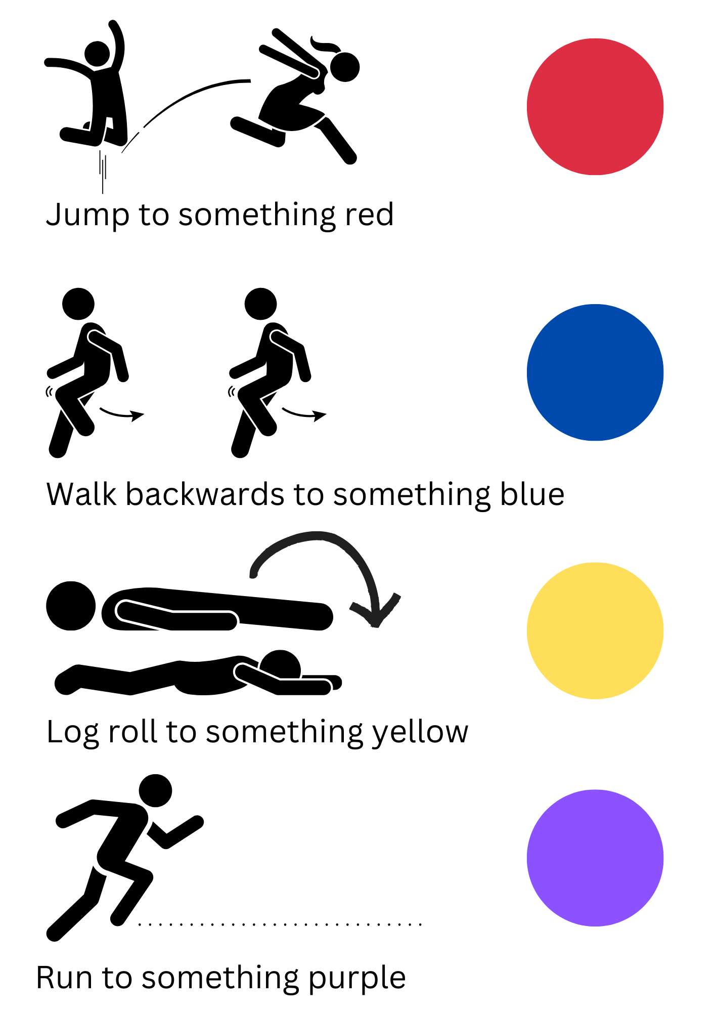 I've put together a little movement activity for your children that I hope they enjoy. They can also design their own version of game using the same general idea. You can see the game at the end of this email and click here to download the print-friendly version.